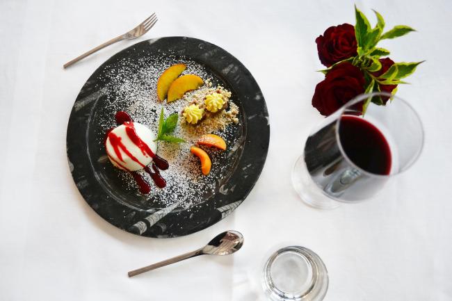 - a four course dinner with a choice of starters and main courses,